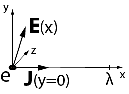 Facciamo innanzitutto la seguente ipotesi: essendo le cariche elettrica/magnetica prive di massa e non essendoci per ipotesi effetti e.m. prodotti dal loro moto circolare, possiamo rappresentare la circonferenza λ lungo cui esse sono vincolate come se fosse un segmento di retta dell'asse di riferimento considerato (X oppure Y).